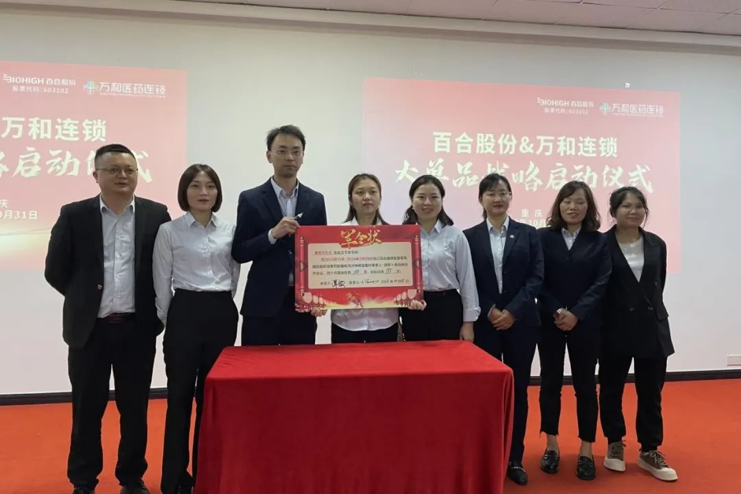 2023年10月31日,百合股份携手重庆万和药房连锁有限公司大单品战略合作启动会在重庆盛大开启。
