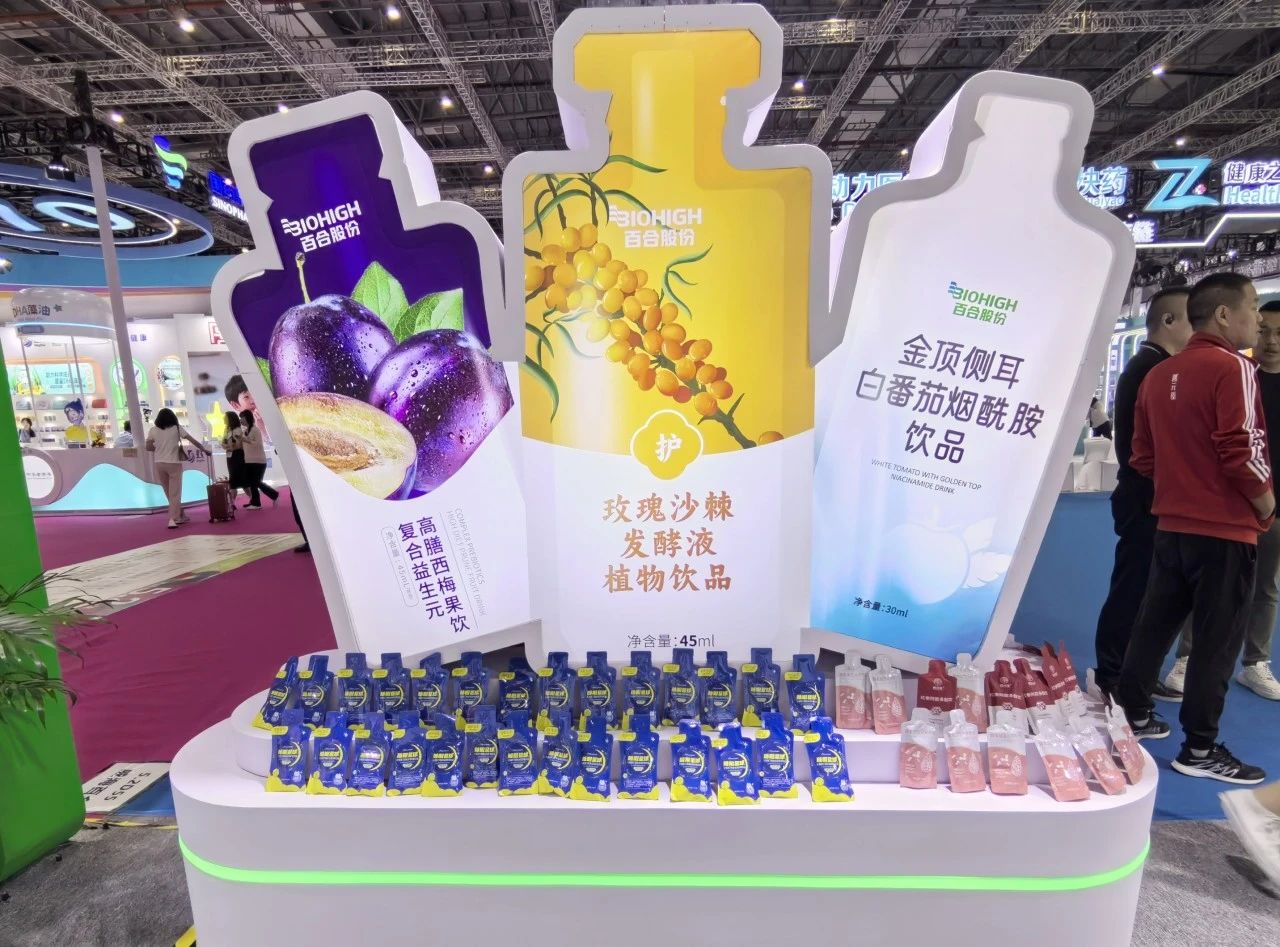 从30/50ml质感玻璃瓶、25ml纤纤瓶,到多规格形状的袋装饮品,滴剂滴饮等等,百合股份通过多元化剂型带领功能食品破圈出彩。