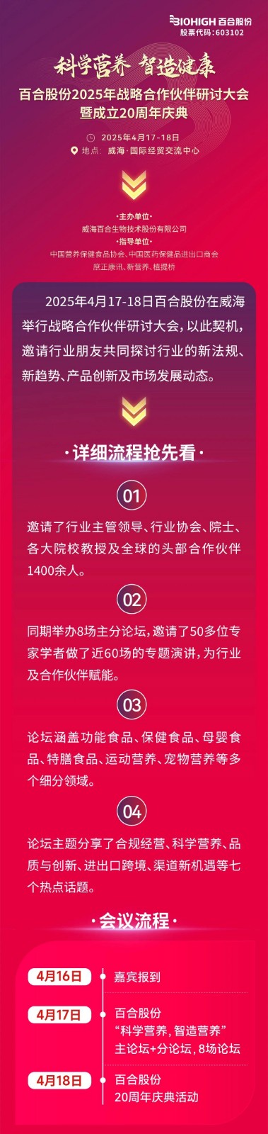 科学营养·智造健康!2025年百合股份战略合作伙伴研讨大会详细议程抢先看!