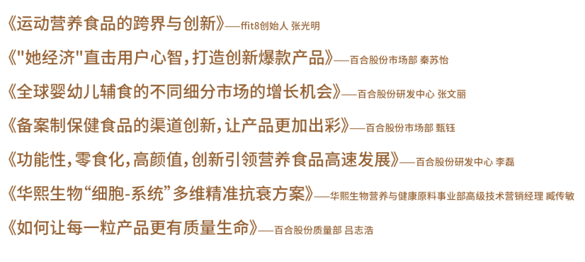 备案制下的渠道创新、运动营养食品的跨界与创新、女性群体爆款创新、剂型创新、口感创新、原料创新、生产技术创新······