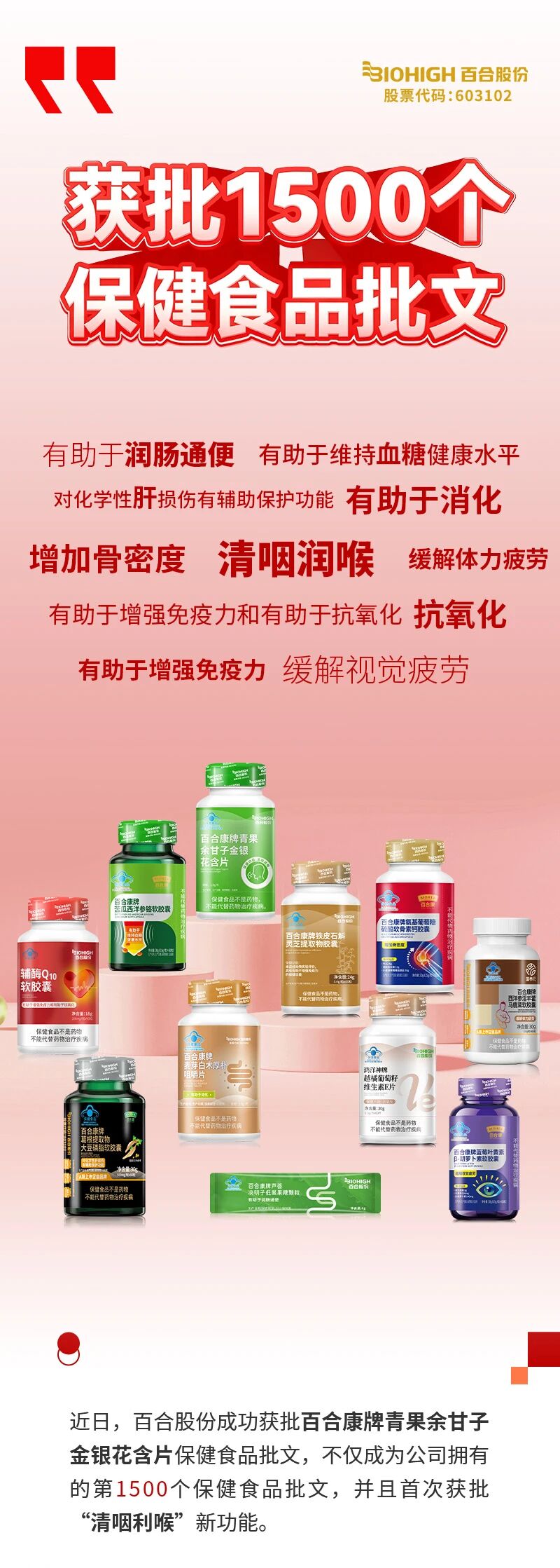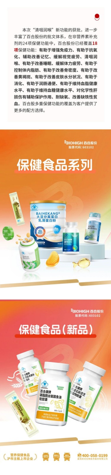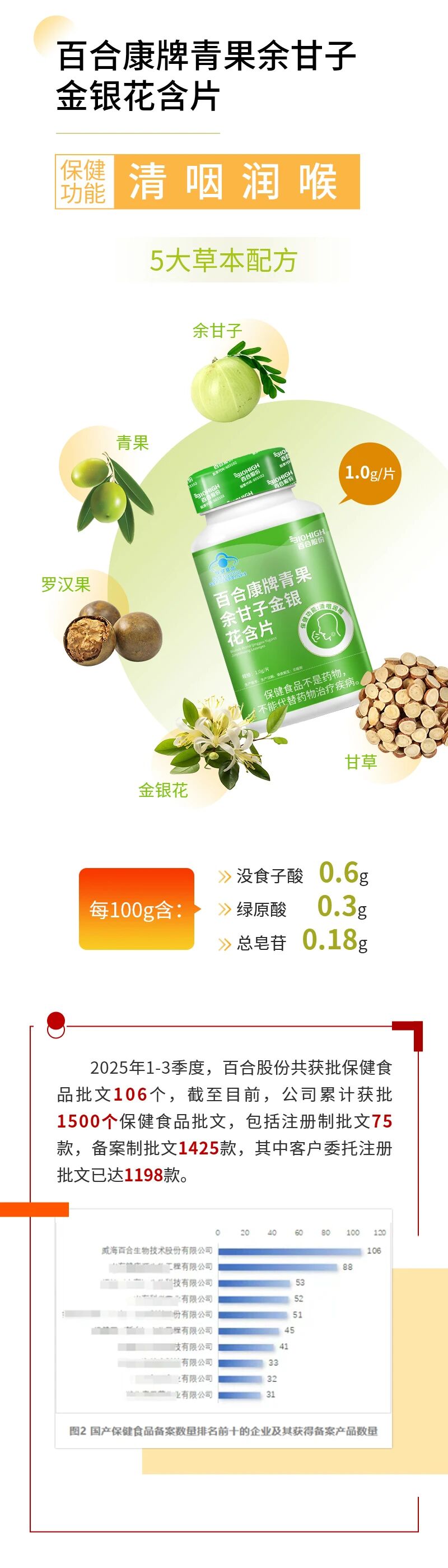 第1500个!百合股份获批“清咽利喉”保健食品新批文